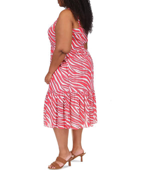 Michael Kors Soft Zebra Midi Dress viscose Red Plus Size 3X MSRP $185