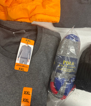 Men's Clothing Assorted Wholesale Lot, LEVI'S, POLO RALPH LAUREN, ADIDAS, EDDIE BAUER, HEAT HOLDERS and more, 11 items, Shelf Pulls, MSRP $511