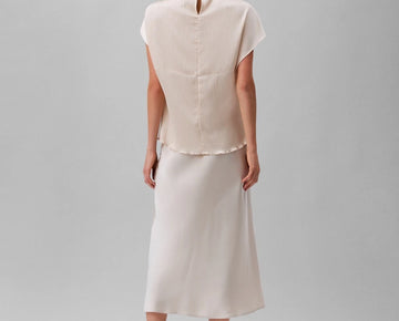 Calvin Klein Women's Pliss? Shirred Shoulder Top Sand Beige Size XL MSRP $69