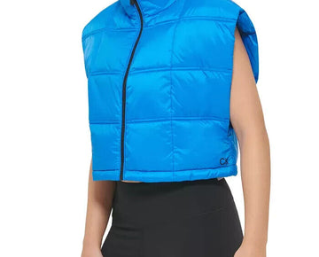 Calvin Klein Women's Cropped Mock-Neck Zip-up Vest Neon Blue Size L MSRP $80