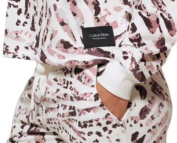 Calvin Klein Performance Women's Printed Crop Pullover Top White Size L MSRP $60
