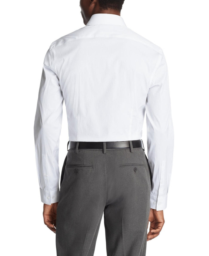 This re-imagined Calvin Klein X Extra Slim Fit program incorporates a new high-quality cotton nylon stretch wrinkle resistant fabric with a super-soft hand feel. A hidden collar stays and an untucked length make this a versatile and comfortable option for today's dressed-up/dressed-down needs.