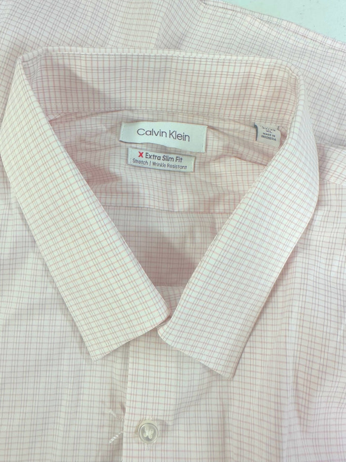 Calvin Klein Men's X Extra Slim Fit Dress Shirt White Pink Size 17/17.5-32/33