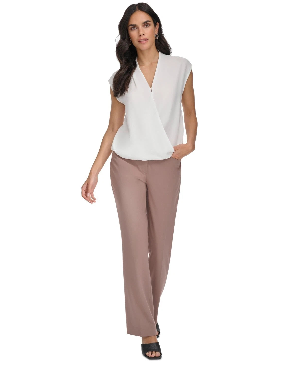 Elevate your wardrobe with this faux-wrap blouse from Calvin Klein, offering a sophisticated and chic look.