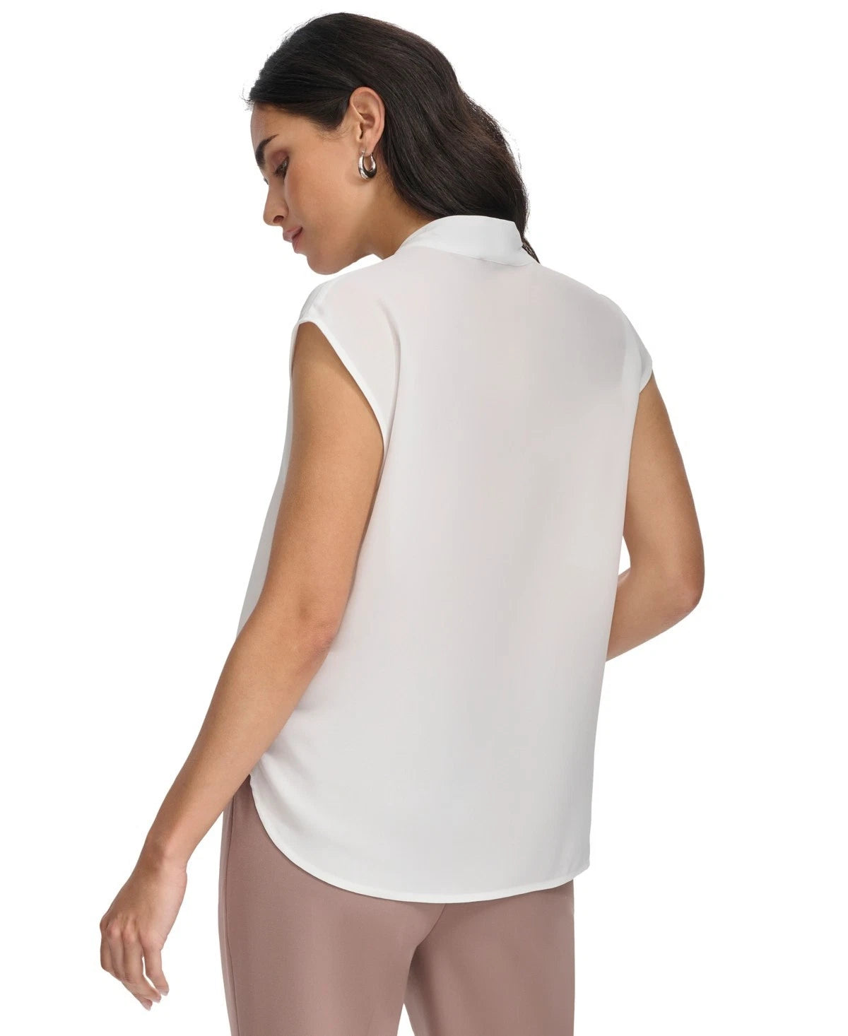 Calvin Klein Women's Cap Sleeve Faux-Wrap Blouse White Size L MSRP $59