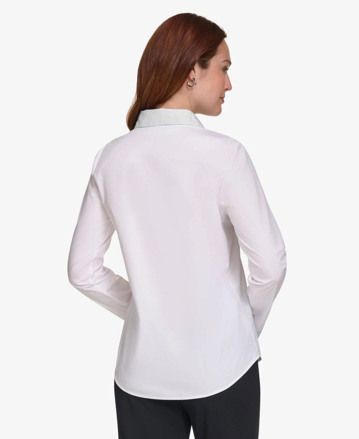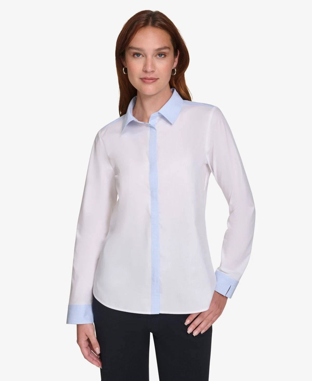 ** Striped collar, cuffs and placket