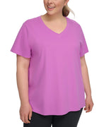 Calvin Klein Womens Solid Basic T-Shirt, Blue, Plus Size Size 2X