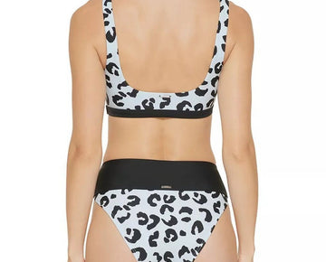 DKNY Women's Printed High Waist Bikini Bottoms Swimsuit Black Size XL