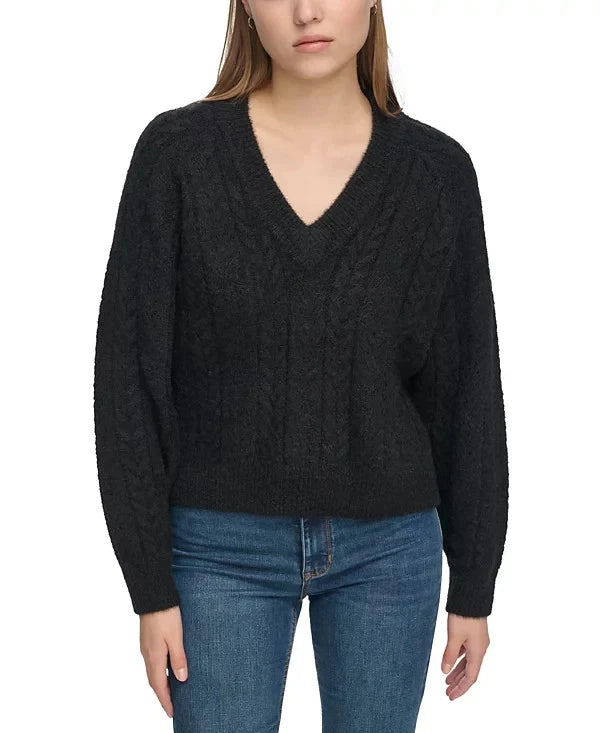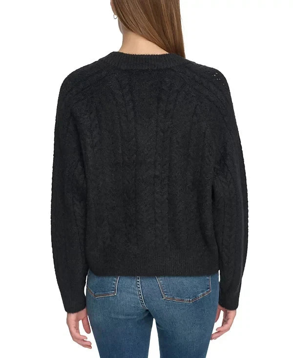 DKNY Jeans Women's Long-Sleeve Novelty Knit Sweater Black Size L MSRP $89