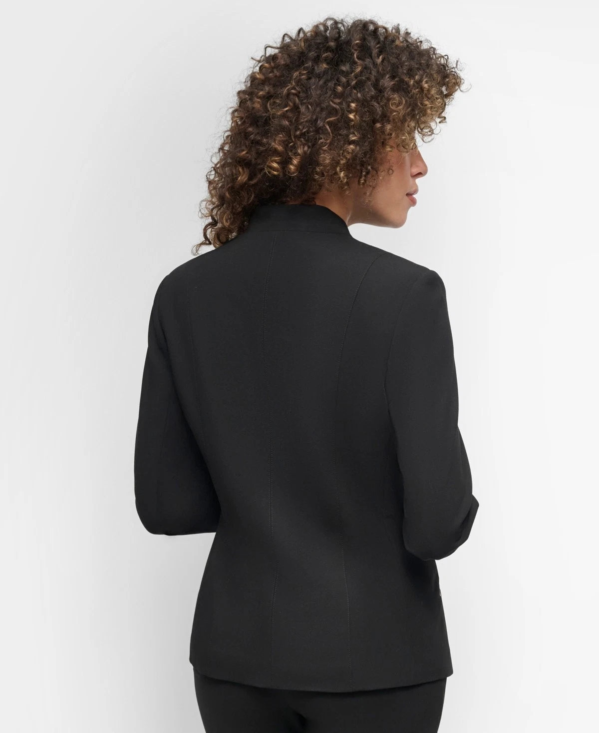 This elegant mandarin-collared blazer from DKNY adds a simply effortless look to your day.