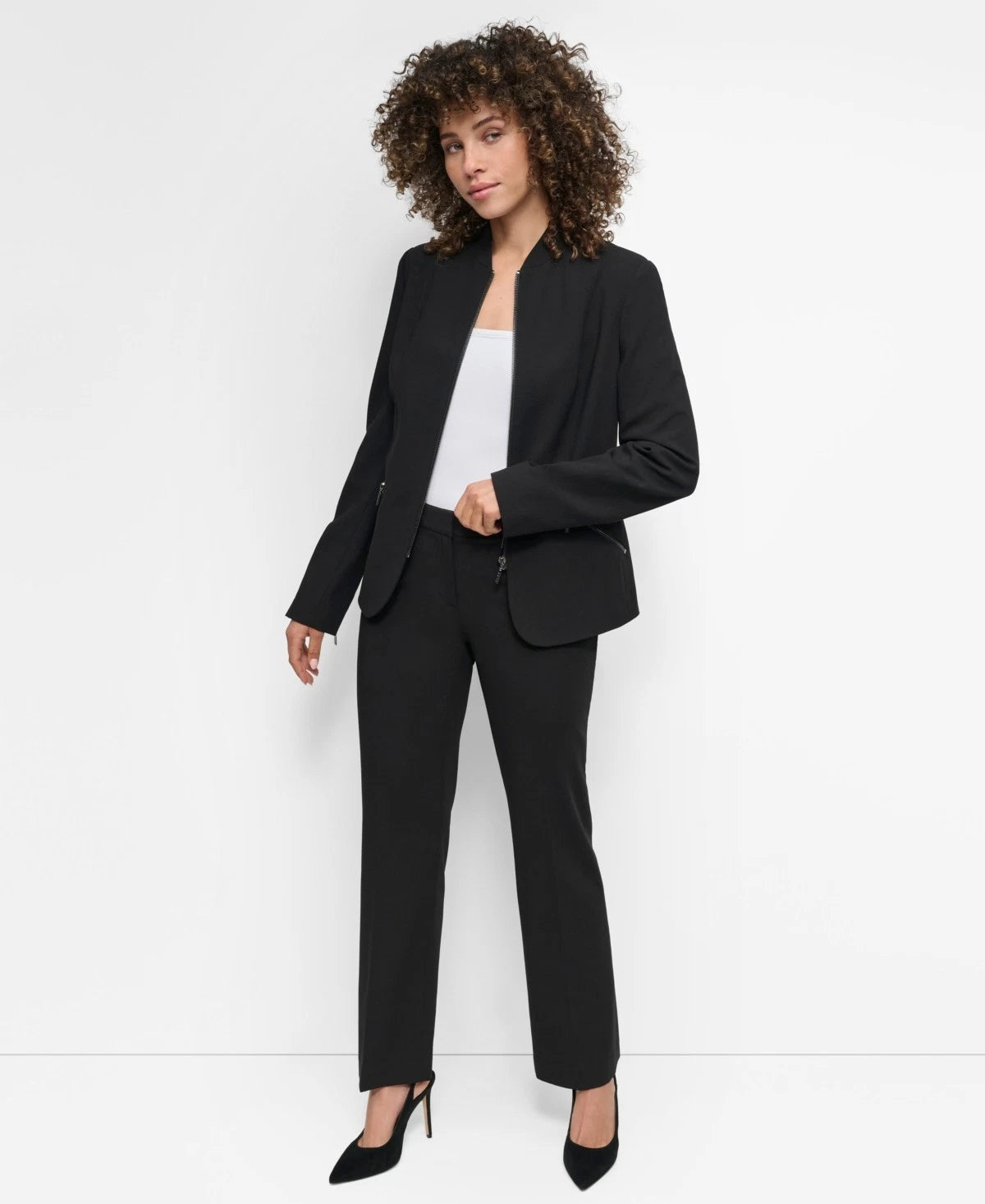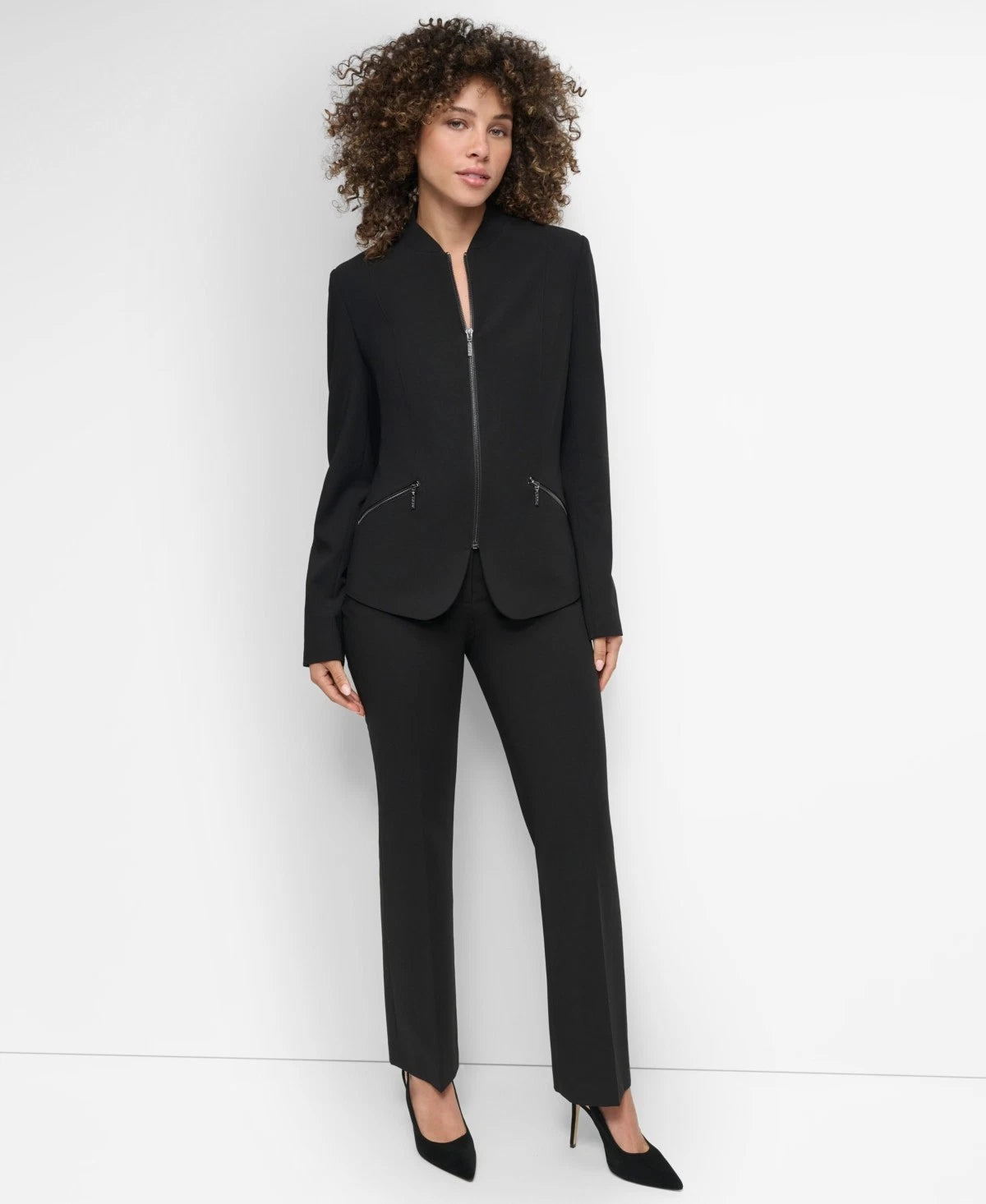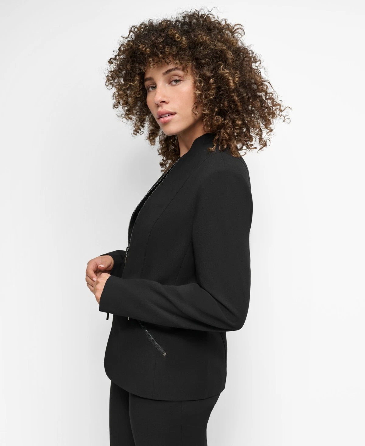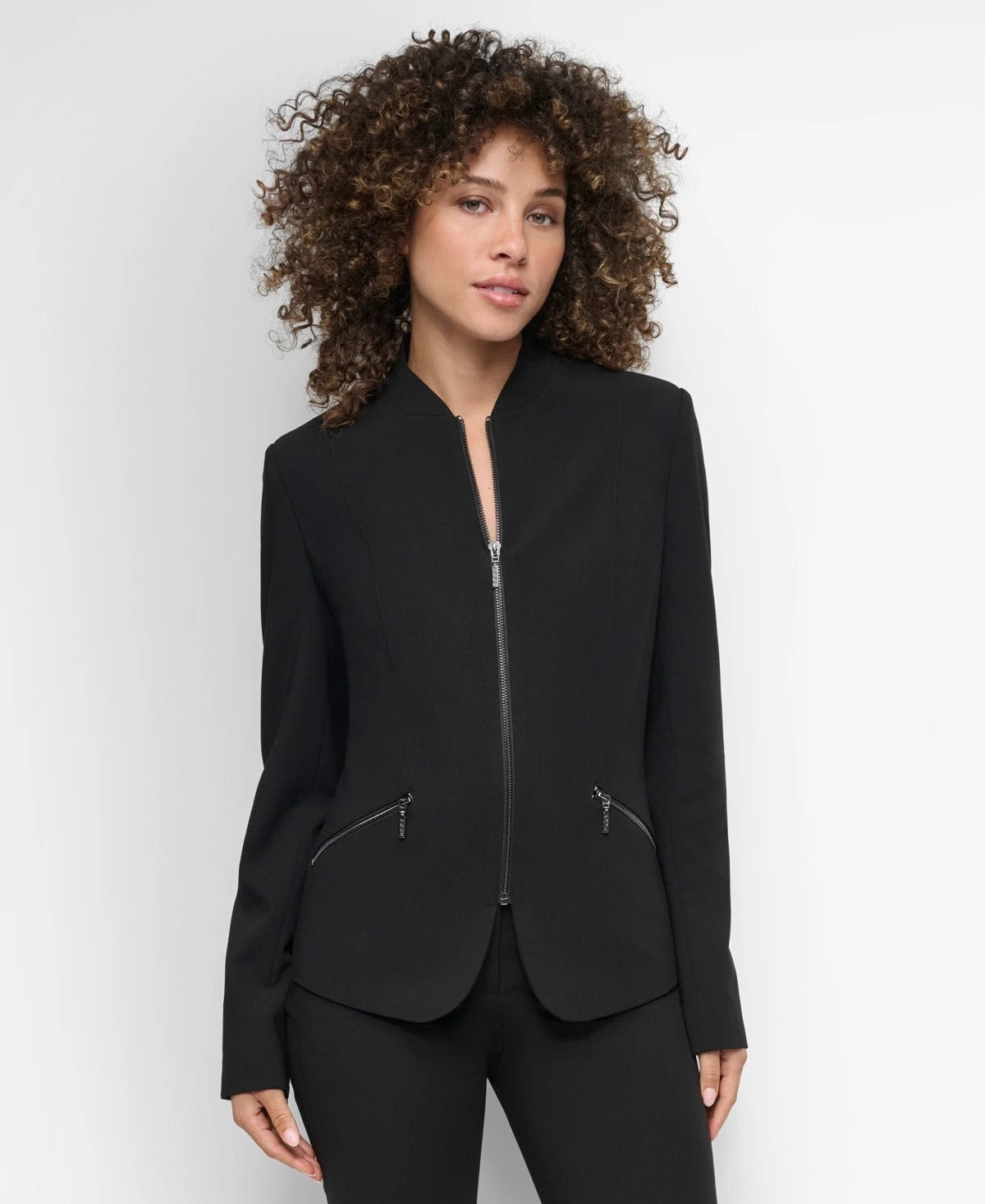 DKNY Women's Mandarin-Collar Zip-Front Long-Sleeve Blazer Black Size 2 MSRP $159