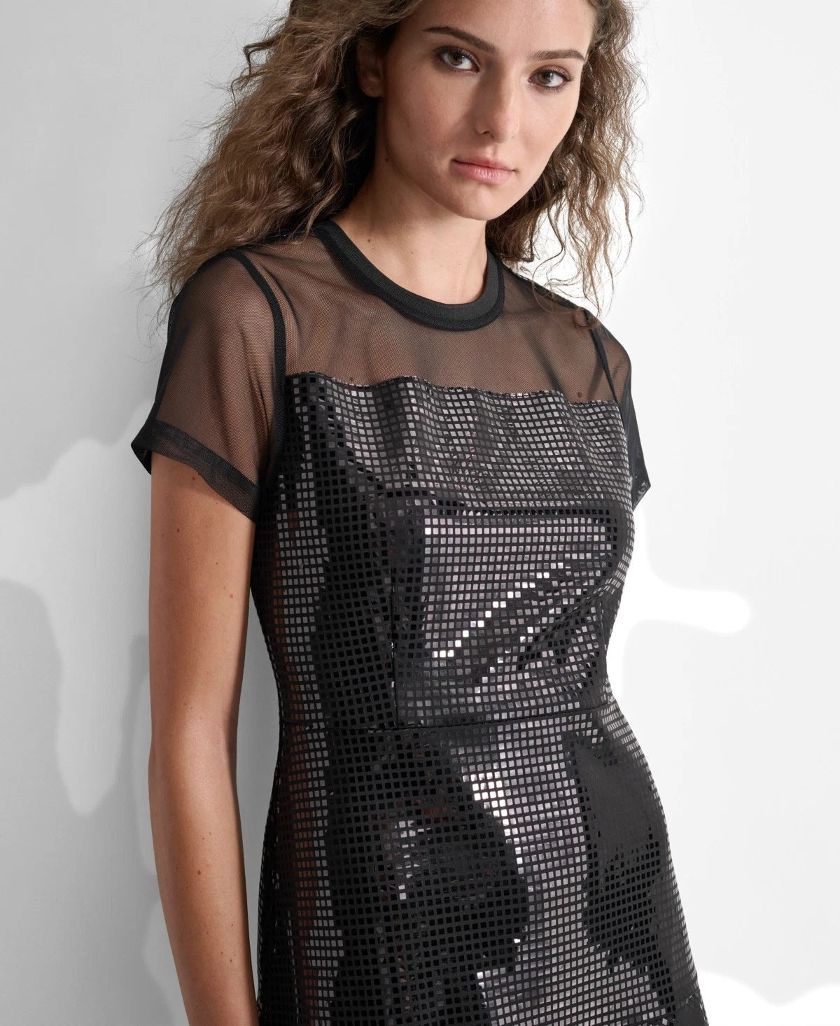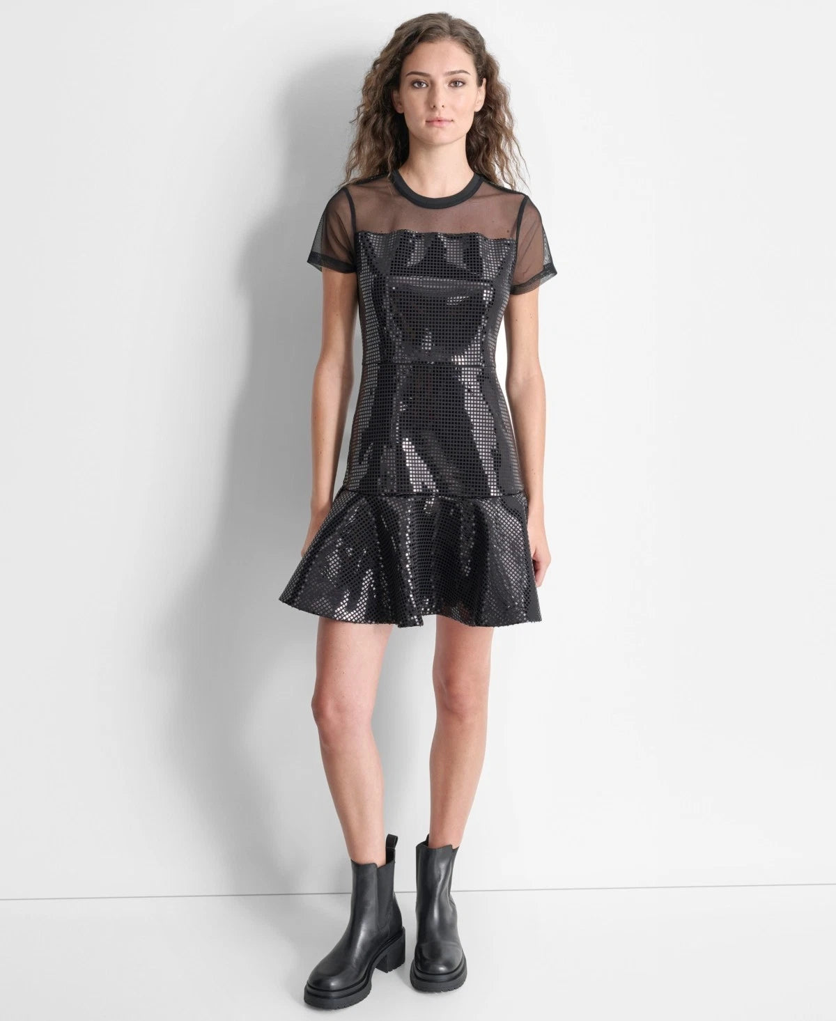 DKNY Women's Sequin Ruffled-Hem Mini Dress Black Size 16 MSRP $199