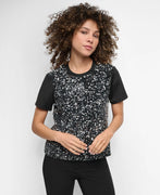 DKNY adds shimmer and shine to your day with this sleeveless sequined tank top.
