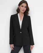 A sheer inset lends a modern feel to this short-sleeve sweater from DKNY.