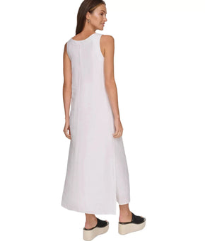 DKNY Linen V-Neck Maxi Dress White Size XS MSRP $115