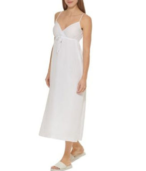 DKNY Women's V Neck Front Tie Maxi Dress Cover Up Swimsuit White Size XL