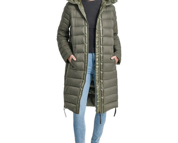 DKNY Jeans Womens Down Quilted Hooded Puffer Coat Olive Green Size XXS MSRP $229