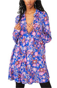 Free People Trapeze Dress Womens Size L Blue Floral Swing Shirt V-Neck MSRP $148New with tagsBrand new with retail tags attached. Fabric is clean and intact with no stains, holes,...