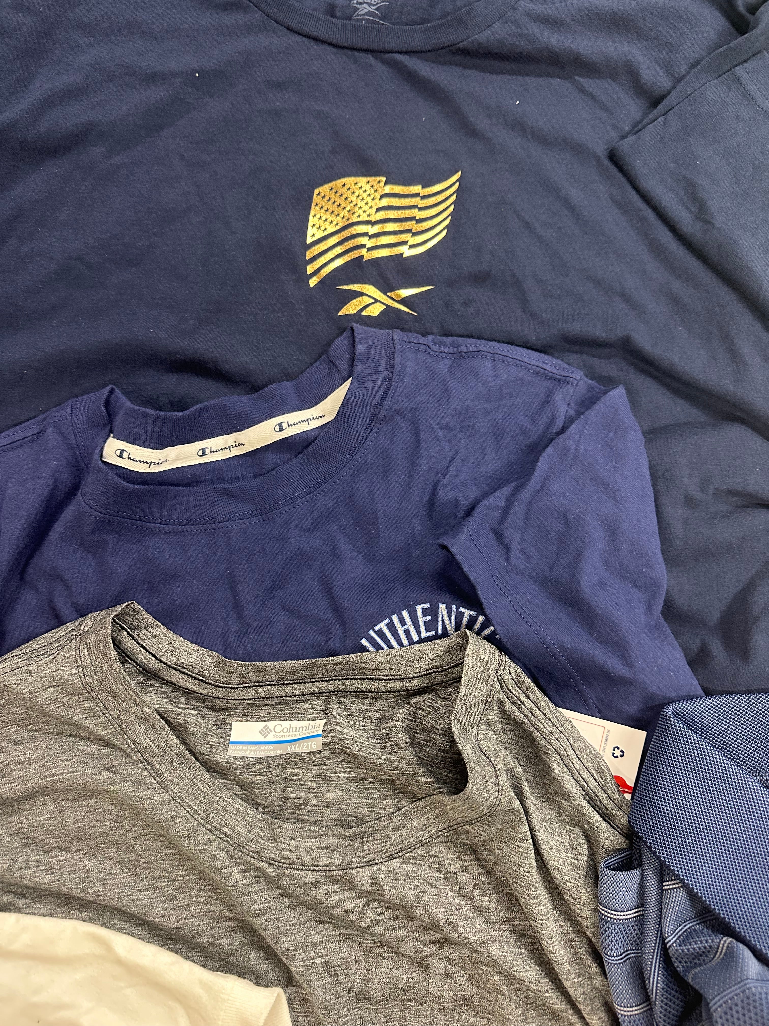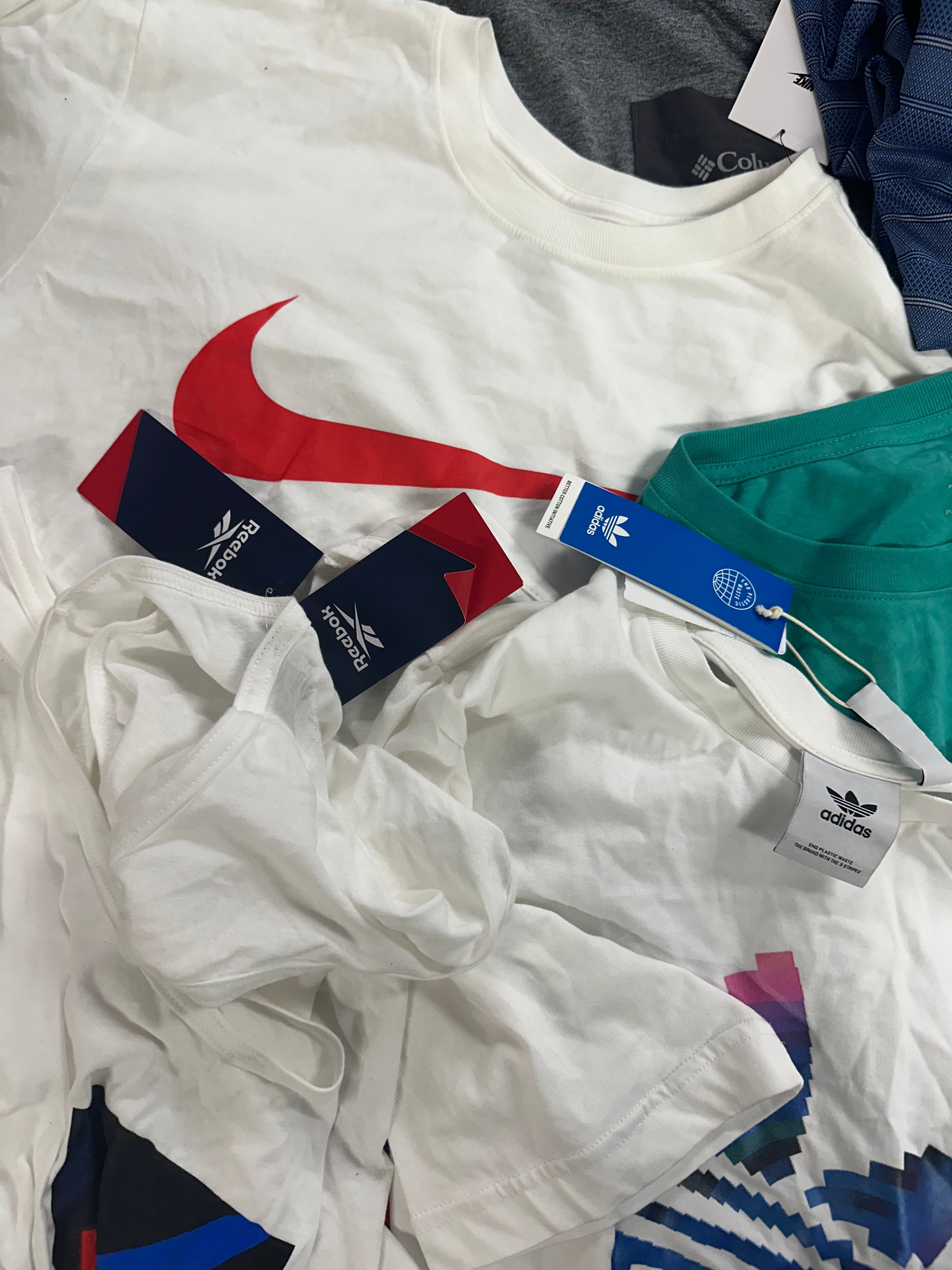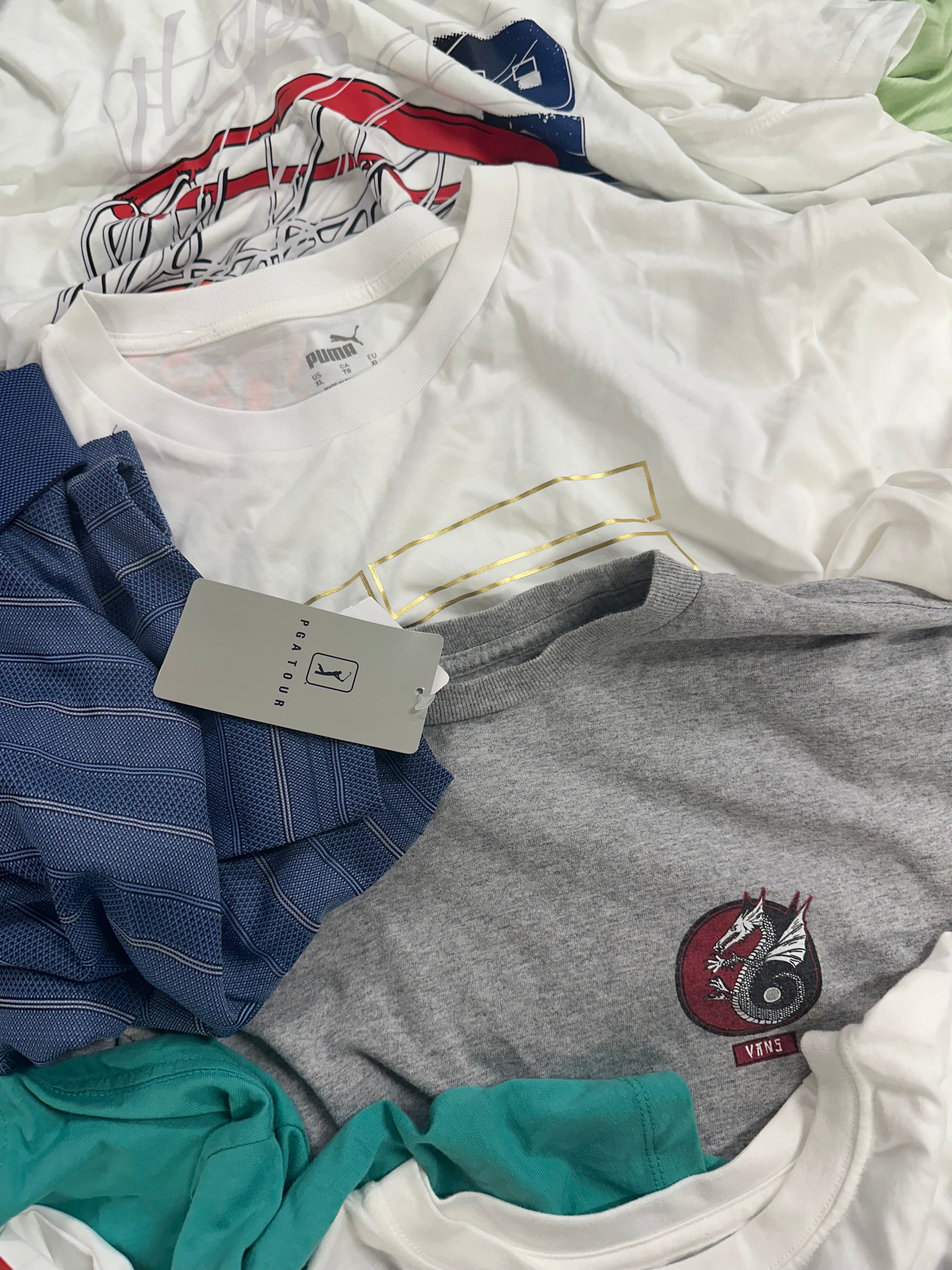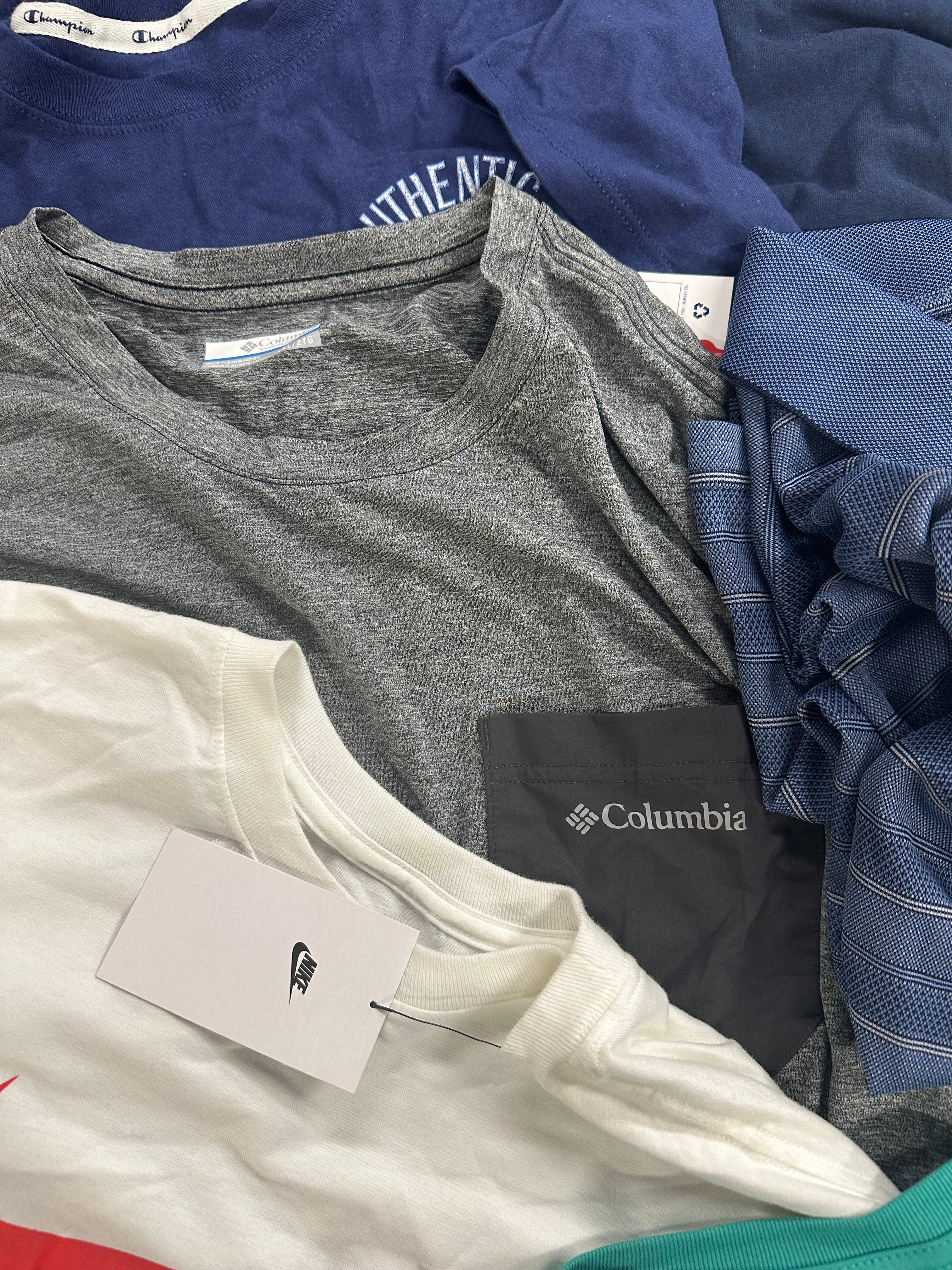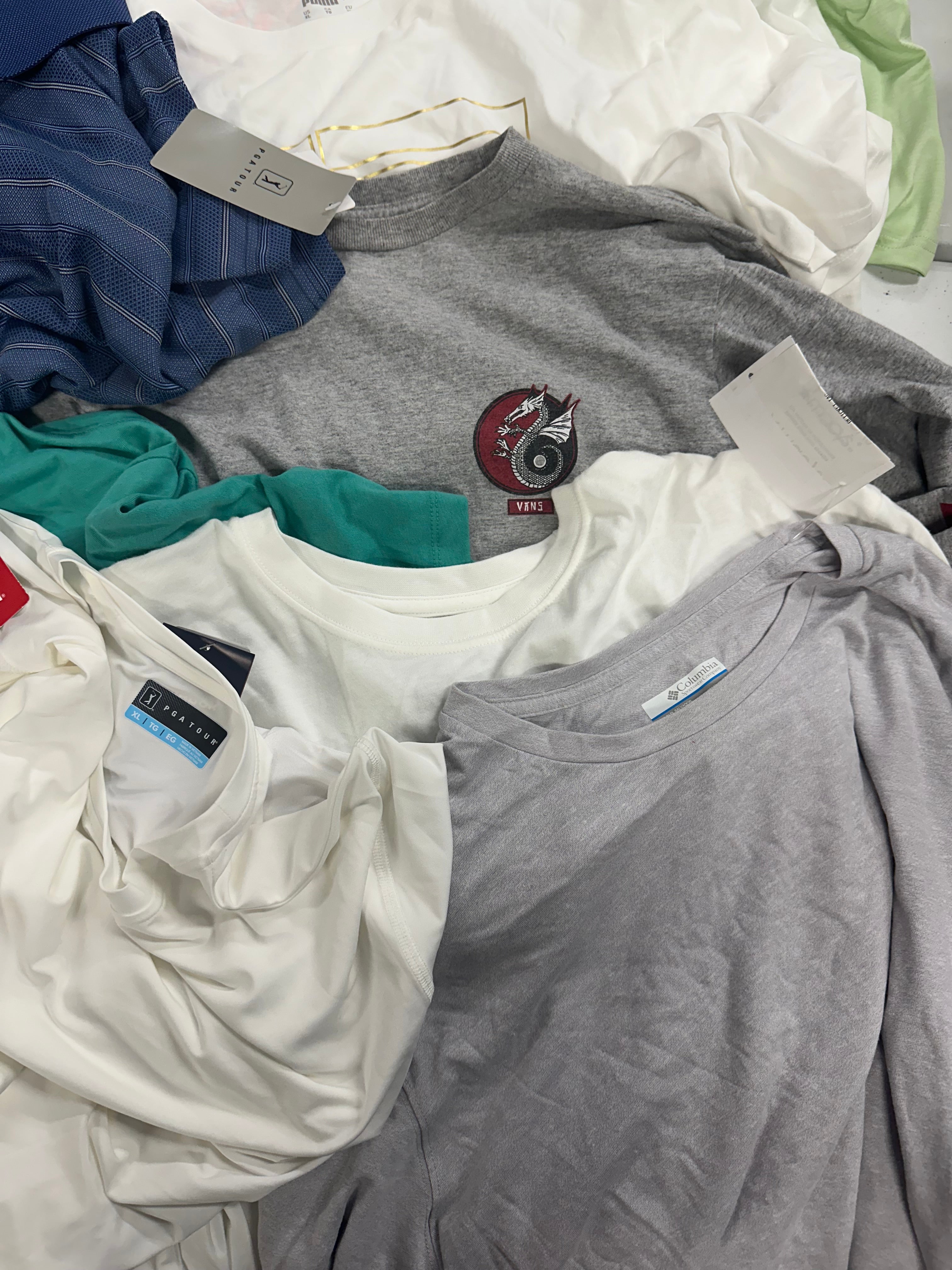 Men's Clothing T-Shirts Wholesale Lot, ADIDAS, NIKE, COLUMBIA, PUMA, QUIKSILVER, REEBOK and more, 17 items, Shelf Pulls, MSRP $555