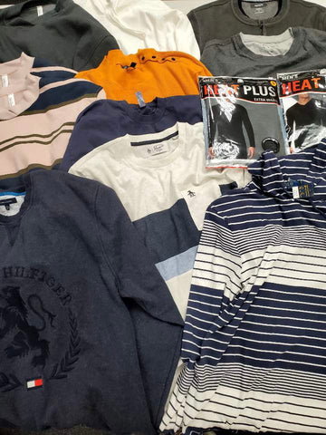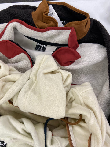 Men's Clothing Sweaters & Others Wholesale Lot, HURLEY, LEVI'S, WEATHERPROOF, GERRY, 10 items, Shelf Pulls, MSRP $588