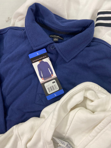 Men's Clothing Hoodies and Other Tops Wholesale Lot, BANANA REPUBLIC, CATERPILLAR, AMERICAN APPAREL, 12 items, Shelf Pulls, MSRP $536