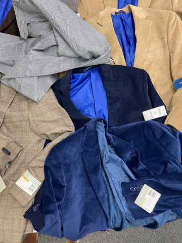 Men's Clothing SUITS/BLAZERS Wholesale Lot, INC Only, 6 Units, Shelf Pulls, MSRP $847