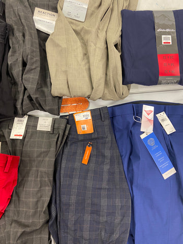 Men's Clothing Pants and Others, Wholesale Lot, EDDIE BAUER, STEVE MADDEN, CHAPS, WEATHER PROOF, 32 DEGREES and more, 14 items, Shelf Pulls, MSRP $1,091