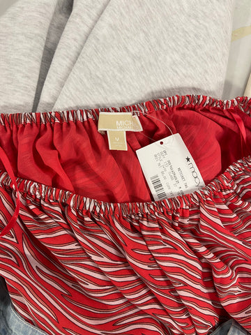 Michael Kors Foil-Print Smocked Peasant Dress Turquoise Blue Size S MSRP $125