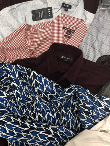 Men's Clothing Button Down shirts Wholesale Lot, DKNY, LEVI'S, WEATHERPROOF, INC and more, 15 Units, Shlef Pulls, MSRP $971.00