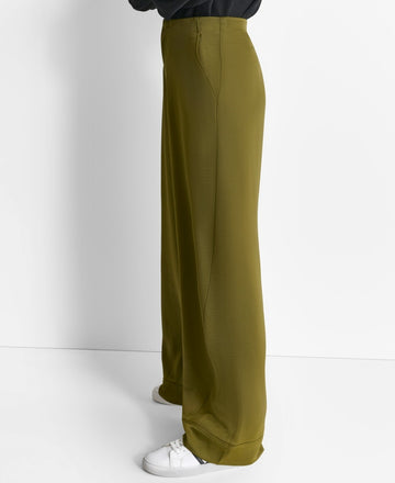 DKNY Glazed High Rise Seamed-Cuff Wide-Leg Pants Olive Green Size 2 MSRP $99