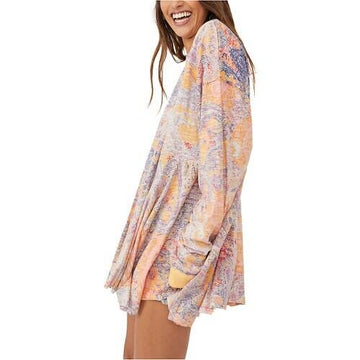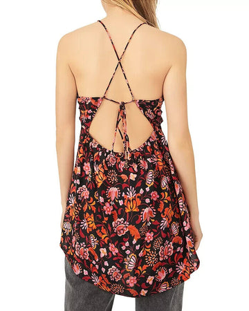 Free People Pixie Cross Back Tunic Top in Dark Combo Size M Pink MSRP $108