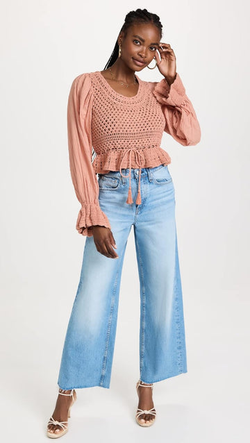 Free People Women's Megan Crochet Top, Coral Sand, Pink, Size L