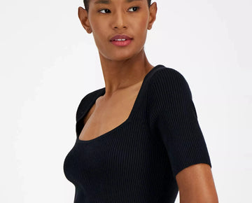 HUGO BOSS Orange Women's Faggio Ribbed Sweetheart-Neck Top Black Size XS MSRP $148