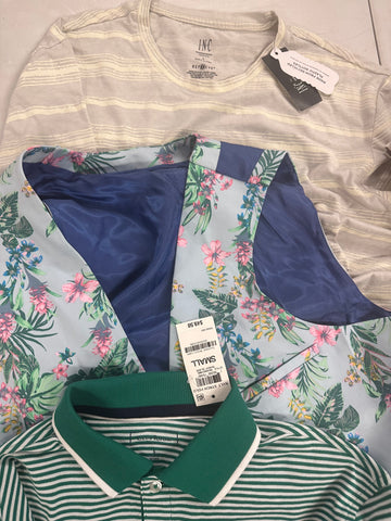 Men's Clothing Tops & Others Wholesale Lot, PERRY ELLIS, 32 DEGREES, BAR III, CLUB ROOM, INC and more, 11 items, Shelf Pulls, MSRP $537