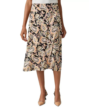 Kasper Petite Printed Pull-On Midi Black Butterscotch Size PXL MSRP $69