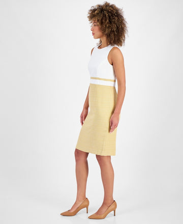 Kasper Women's Sleeveless YELLOW Seamed Waist Sheath Dress SIZE 6P $89