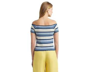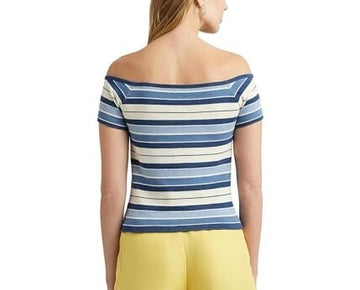 Lauren Ralph Lauren Womens Striped Off-The-Shoulder Blue Size L MSRP $125