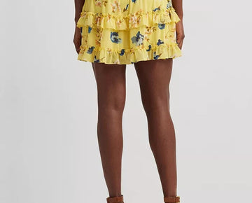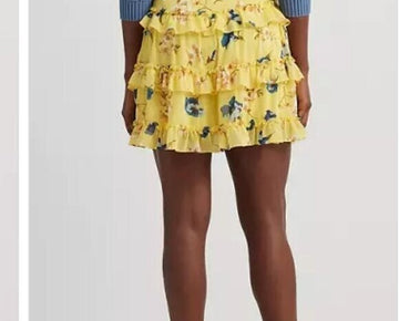 LAUREN RALPH LAUREN Ruffled Miniskirt Size 12 Yellow MSRP $145