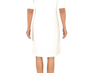 LAUREN RALPH LAUREN Womens White Elbow Sleeve Point Collar Shift Dress Size S