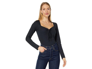 Lucky Brand Women's Ribbed Keyhole-Cutout Long-Sleeve Top Dark Gray Size L $60