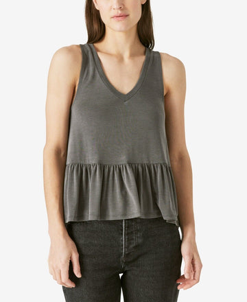 Lucky Brand Women's Tiered V-Neck Tank in Asphalt GRAY Size L MSRP $50