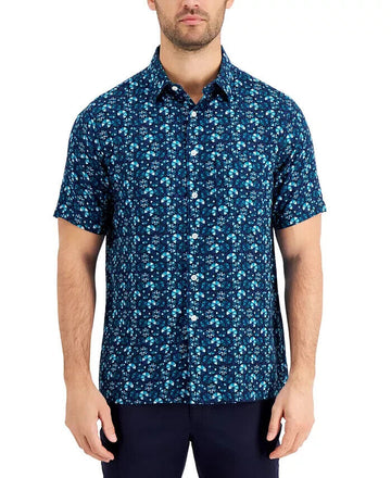 Michael Kors Foil-Print Smocked Peasant Dress Turquoise Blue Size S MSRP $125