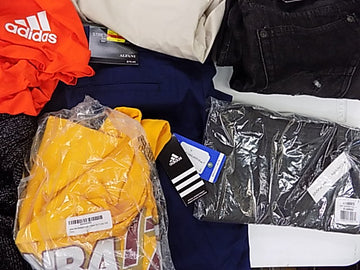 Men's Clothing Assorted Wholesale Lot, NIKE, ADIDAS, LUCKY BRAND, TAHARI, BUFFALO JEANS, KIRKLAND and more, 24 items, Shelf Pulls, MSRP $781