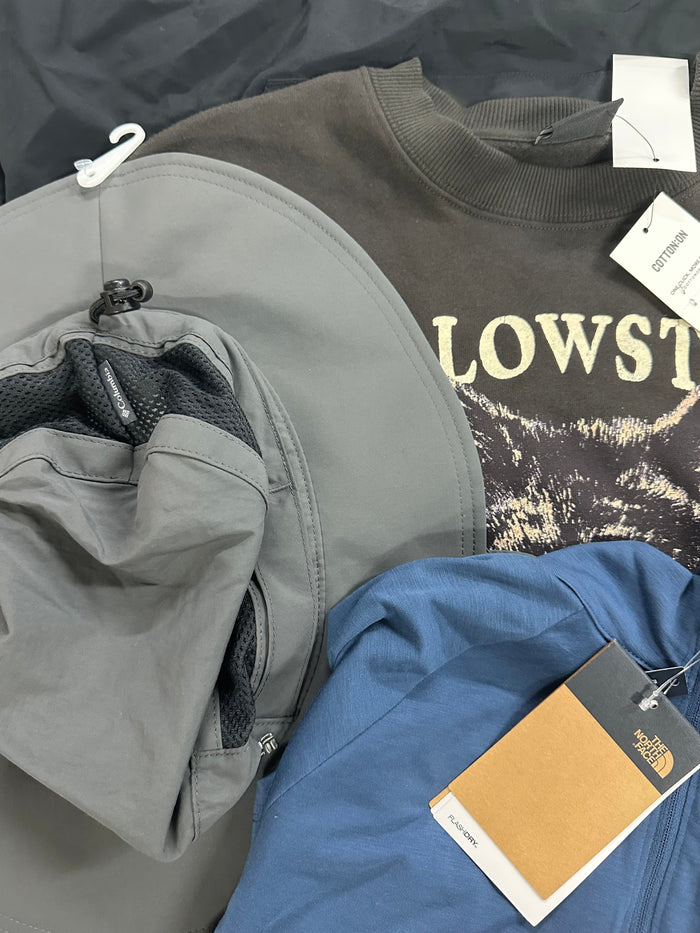 Men's Clothing Assorted Wholesale Lot, TIMBERLAND, NORTH FACE, COLUMBIA, REEBOK and more, 8 items, Shelf Pulls, MSRP $430