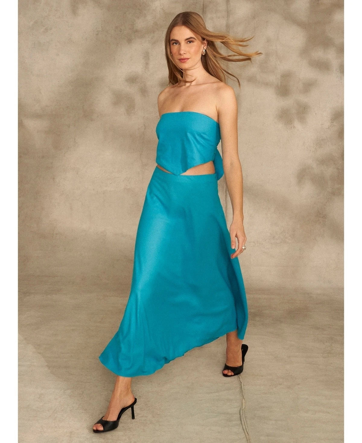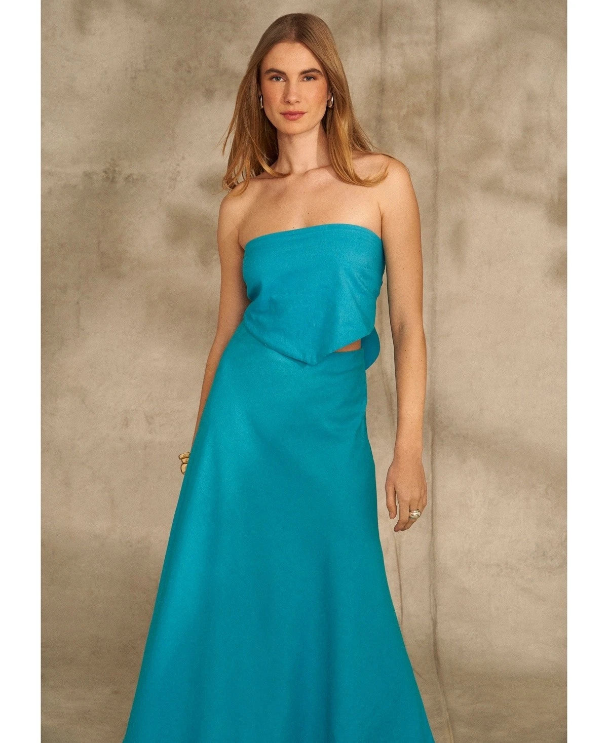 1.STATE dials up the drama with a strapless scarf-style top. This one features a linen-blend fabric for subtle texture, too. ABOUT THE BRAND: 1.State is known for luxurious textiles, interesting prints, sophisticated colors, and ultra-flattering fits.