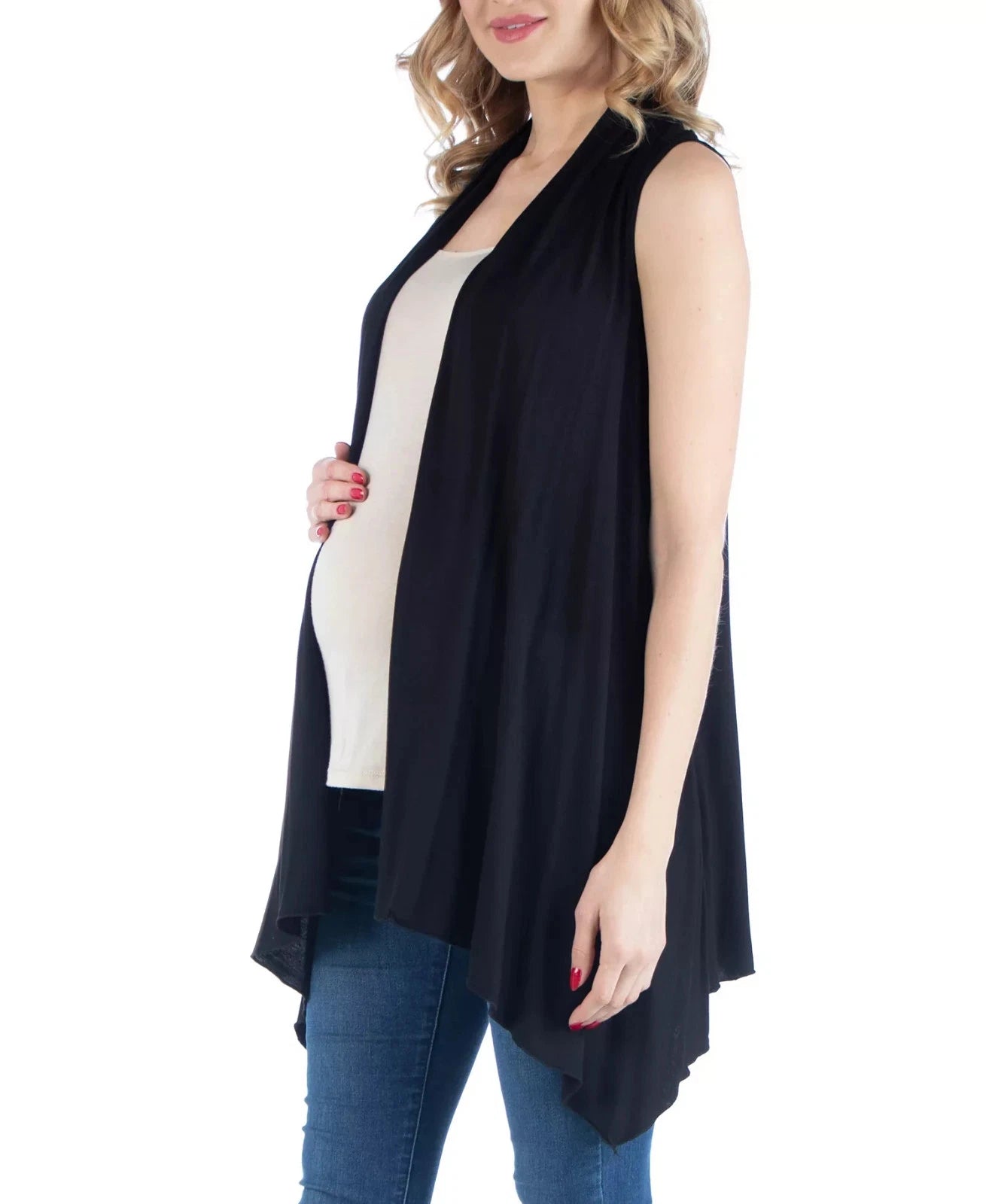 24seven Comfort Draped Maternity Open Front Sleeveless Cardigan Black Size 3X