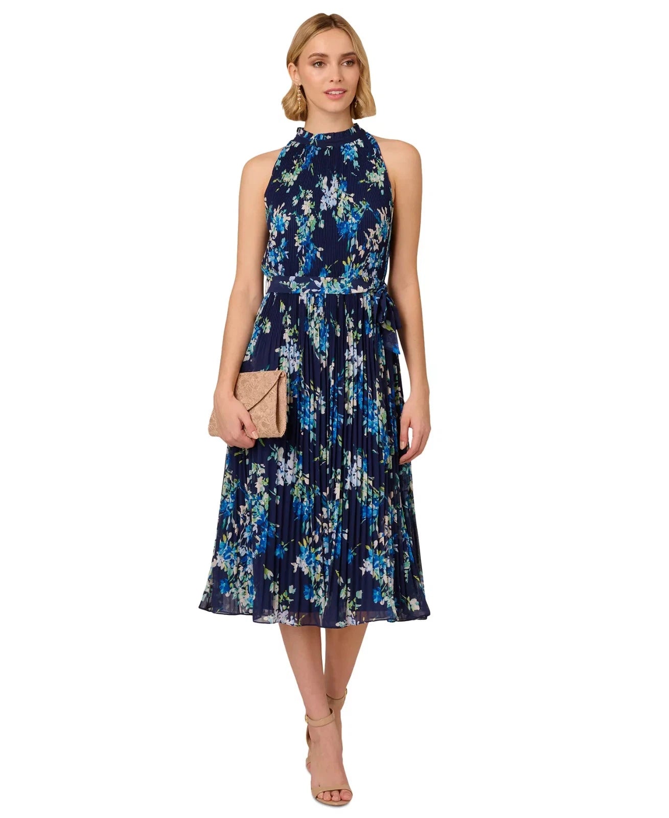 No matter the time of day, this chiffon dress from Adrianna Papell is a gorgeous look. Designed in chiffon fabric with chic mini pleats and covered in romantic florals.