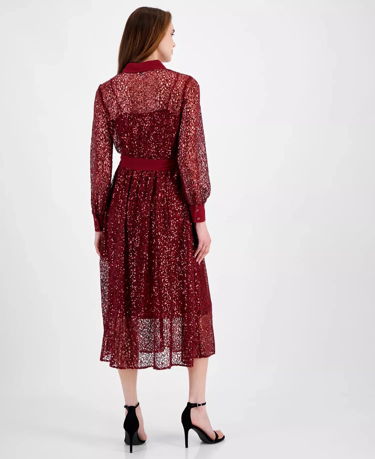 Designed with sequined lace detail throughout, Anne Klein's tie-waist, A-line dress is perfect for your next event.