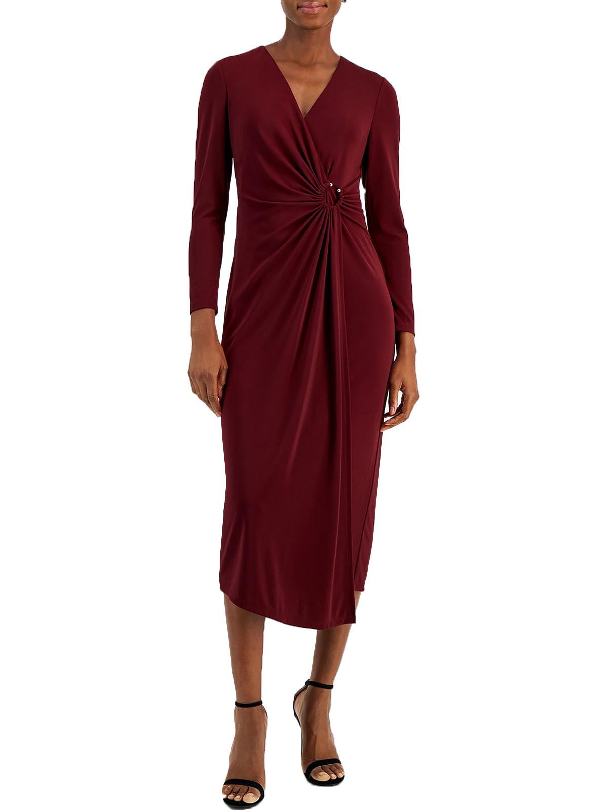 Anne Klein Womens Gathered Midi Dress Dark Red Size XS MSRP $149