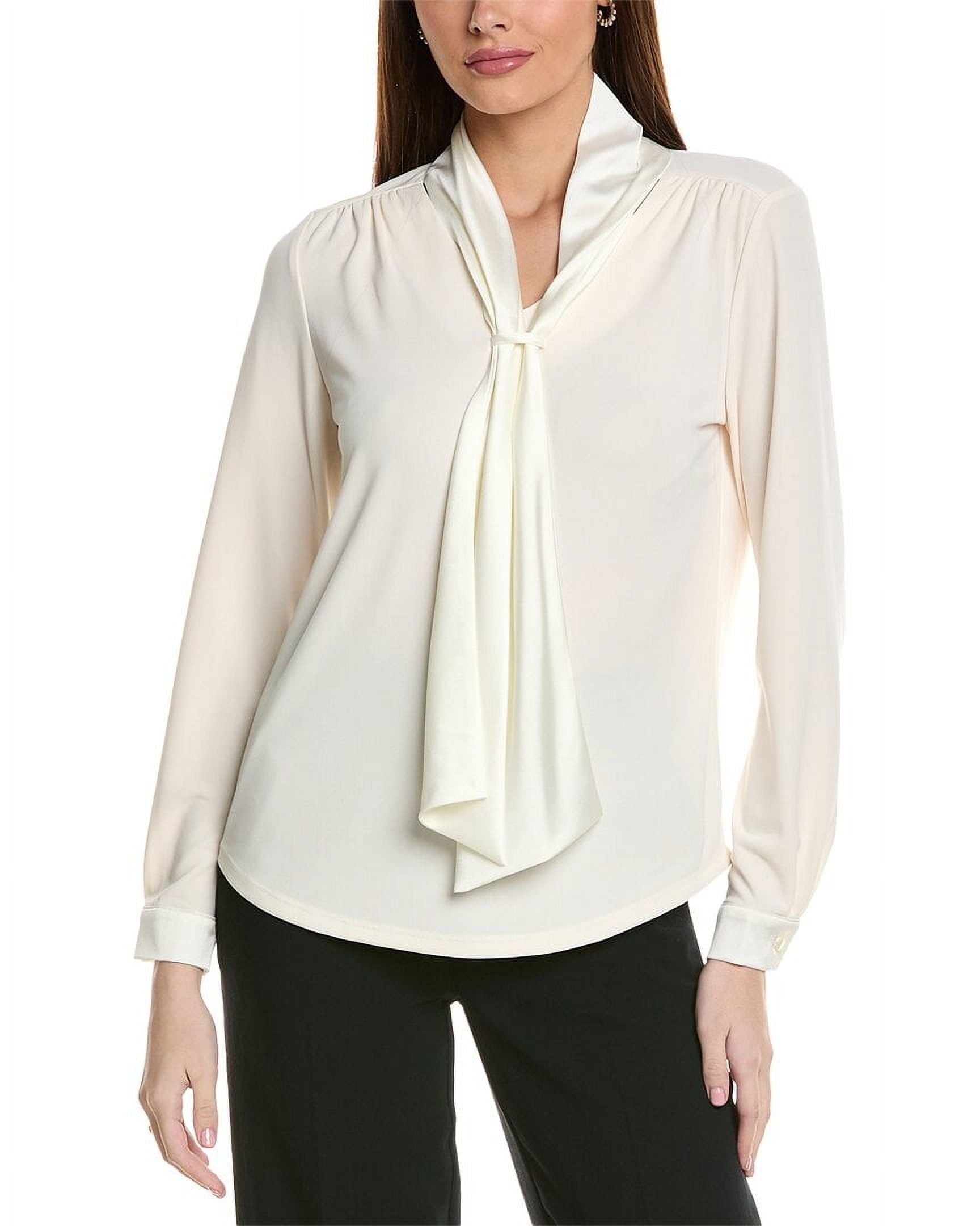 Top in anne white with kerchief neck and button cuffs